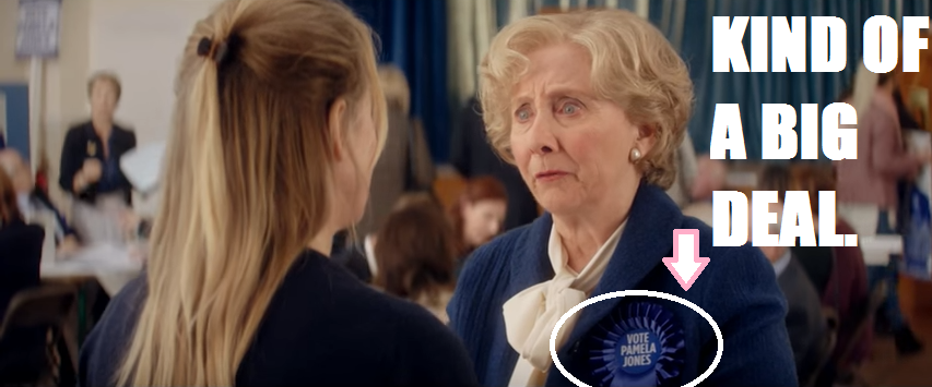 Ohhh so no one knows who Baby Daddy is. That’s interesting. But WAIT. Vote Pamela Jones? Is Bridget’s mum running for office??