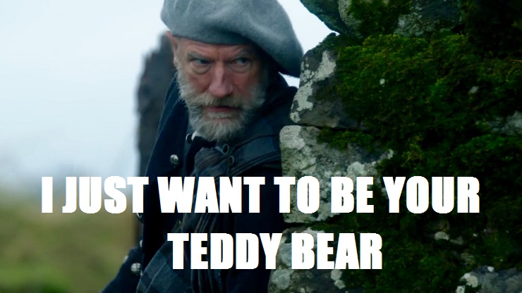 This is the Dougal I know and love. Yeah, last week he stabbed a bunch of guys in cold blood but THIS week he brought us back to his softer side by threatening the redcoats that they’d better not harm Mistress Beauchamp and by telling Jamie and Murtaugh, “Bring our lass back safe.” Awww. Uncle Dougie. Can you be this guy all the time?