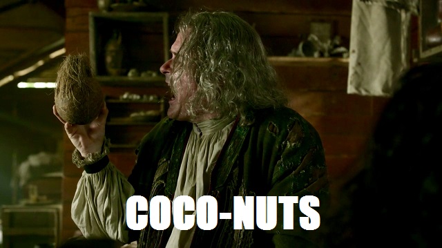 Episode 311,”Uncharted,” finally brings our Jamie and Claire back together! It also gives us a wedding and a dog and a COCONUT! So let’s slap on some sunscreen, hit the beaches of Saint-Domingue, and break down the best of the best from this thirst-quenching tale.