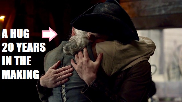 You’ve got your classic Jamie/Claire hug, as is often seen during a dramatic reunion between these two, yet it never seems to lose its shimmer.