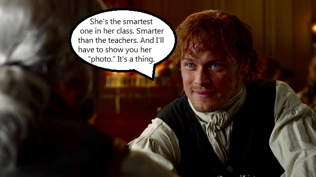 I love how proud Jamie is of his college girl. The sparkle in his eye telling Murtaugh that Brianna is at university—a woman, at that!—is just so adorable. It’s too bad Claire couldn’t have brought him an “MIT Dad” bumper sticker from the future to stick on his horse-drawn wagon.