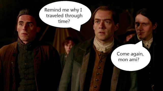 Everyone seems a bit concerned with how Roger is going to fare in the 18th century. (And by everyone, I mean Jamie. Did you count all the digs he made at Rog not having a trade and only being able to sing for his supper? Perhaps Laird JAMMF is jealous since we all know he can’t carry a tune. Poor JAMMF.) But Roger Mac gave us all a glimpse into his inner mettle when he told Aunt Jocasta where she could go shove her offer to leave River Run to Jem.