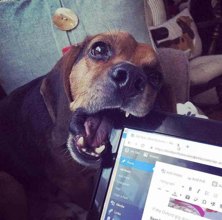 Of course, every story needs a good sidekick, and that’s where Ollie Twist the intern comes in. Ollie keeps the Book Perfume house in order by organizing my library, keeping my lap warm, and providing invaluable feedback when necessary.